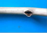 普通導管為一段具有一定長度的塑料管,前斷漸細以便于插入血管;尾部與注射針頭尾端相同,以便于與注射器相連接。普通導管的前段有多種形狀,如單弧、反弧、雙弧、強化雙弧、肝弧正面觀、肝弧側面觀、三弧等,以利于插入不同部位的血管。導管的規格常用F 數(French No)來表示,如6F 或7F 等,F 數等于導管外周長的毫米數。