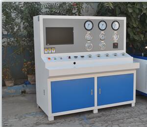 氣瓶內水壓試驗機(鋼瓶內測法水壓試驗機)壓力范圍0~45mpa,介質為靜止的清水,系統內置高壓泵,實現對壓力高的高壓打壓,高壓保壓,高壓泄壓的測試效果,具體的測試步驟為:注水→打壓→保壓→泄壓→輸出數據的過程?!笔怯糜卺槍︿撈浚瑲馄浚菢死p繞瓶,軍工纏繞瓶的內水壓測試的范式,壓力范圍:0.1~45Mpa,介質為靜置的液體,采用思明特增壓泵完成對壓力的增壓,計算機壓力控制系統控制壓力和控制增壓速率。